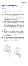- 15. Pole Mount With Supplied U-bolts Or Pipe Clamps (Select A Suitable Place For Mounting The Cpe → Lay The Cpe Out At The Installation Site And Assemble The Cpe On The Ground → Mount The Cpe So That There Is At Least 1 Meter Of Clearance In All Directions → Route The Cable Straight Down The Inside Of The Pole To Avoid Using Extra Equipment Such As Cable Ties)