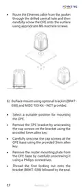 - 17. Route The Ethernet Cable (Surface Mount Using Optional Bracket → Select A Suitable Position For Mounting The Cpe → Remove The Cpe Bracket → Carefully Unscrew The Cap Screws At The Cpe Base → Remove The Router Mounting Plate From The Cpe Base → Thread The First Locking Nut Onto The Bracket)