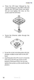 - 18. Place The Cpe Base (Route The Ethernet Cable → Screw The Router Mounting Plate → Carefully Place The Cpe Cover)