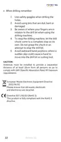 - 22. Use Safety Goggles When Drilling (Avoid Using Bits That Are Dull, Bent Or Damaged → Be Aware Of Where Your Fingers Are In Relation To The Drill Bit → To Stop The Drilling Machine, Let The Drill Chuck Come To A Complete Stop → Avoid Awkward Hand Positions → Antennas Must Be Installed To Provide A Separation Distance Of At Least 20cm From All Persons → Please Ensure That Old Waste, Electricals And Electronics Are Recycled)